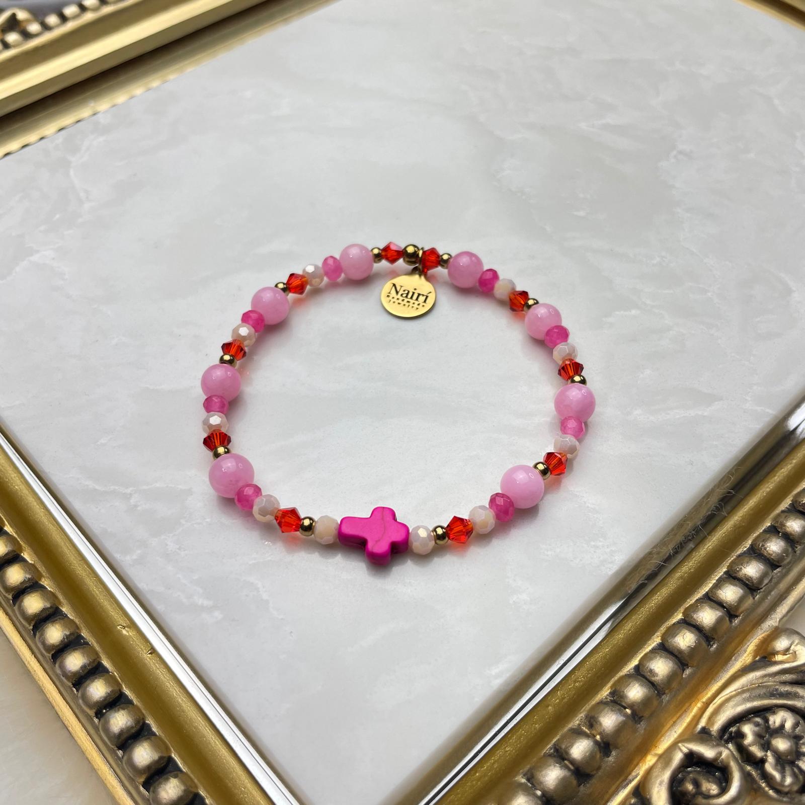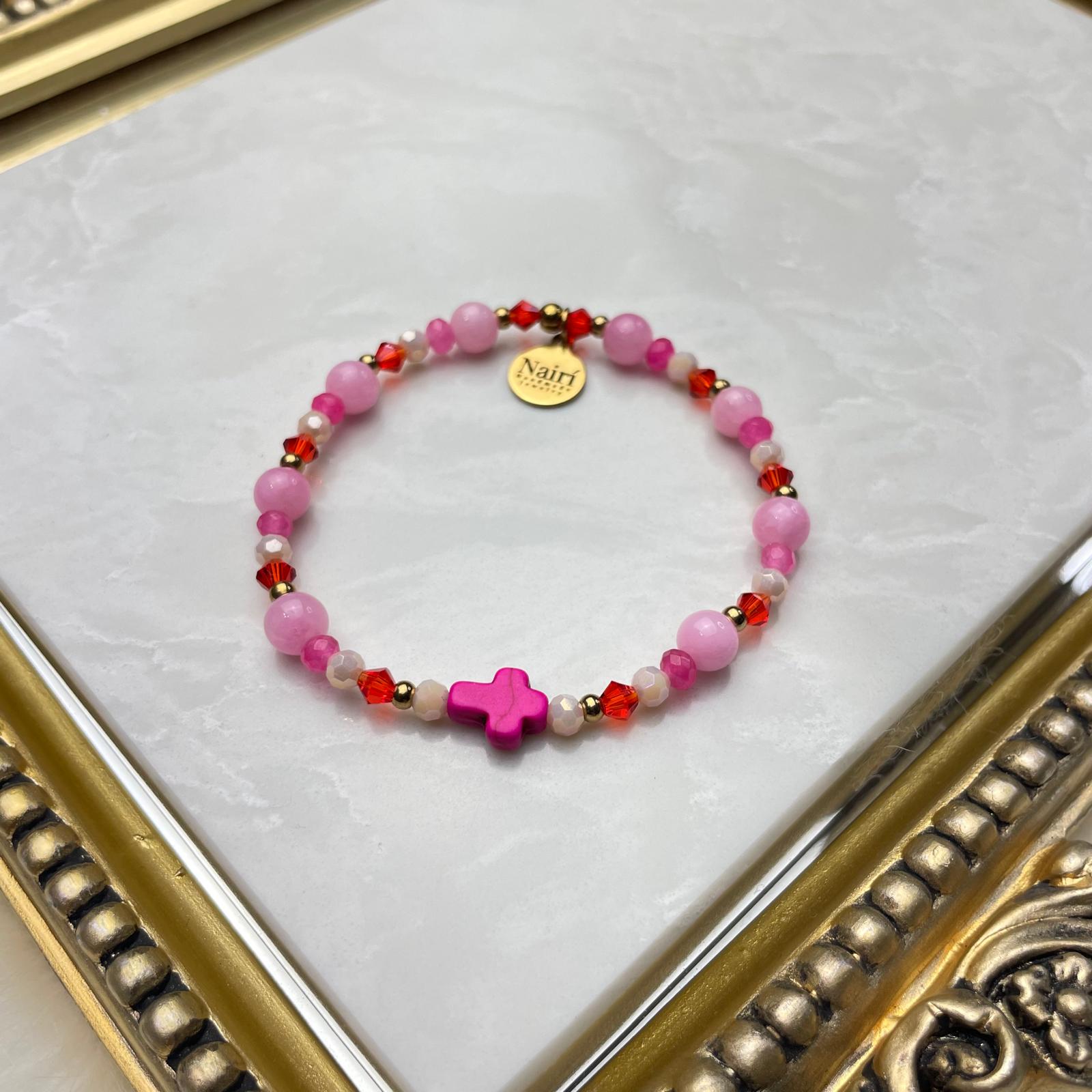 This dainty bracelet features soft pink tones paired with a bold hot pink cross that stands out beautifully. He Loved First is a statement of truth and love—reminding us that in Jesus, love was never an afterthought. He loved us first.